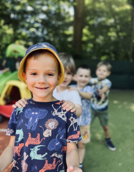 Duży, fajnie urządzony plac zabaw, teren zadrzewiony. Gdy tylko pogoda na to pozwala, dzieci spędzają większość czasu na zewnątrz, co jest super. Podwieczorki w okresie letnim są piknikiem na trawce.